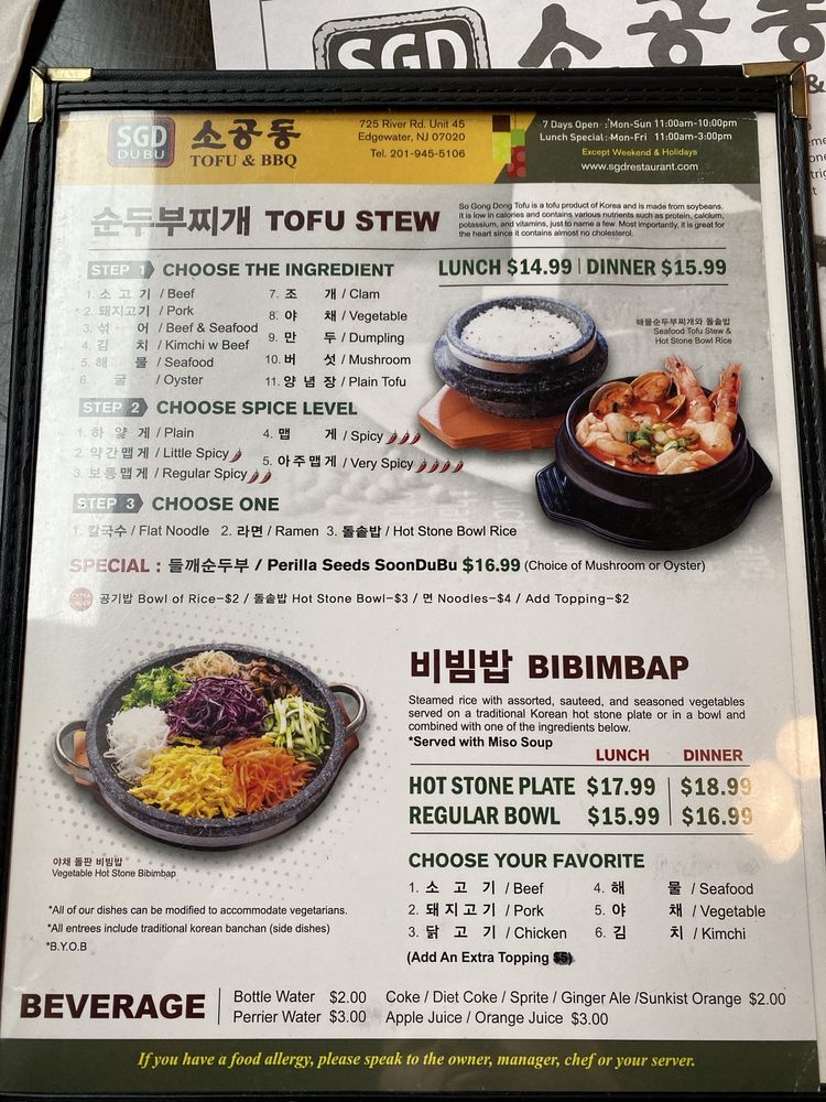 Welcome to EDGEWATER SGD TOFU & BBQ, a hidden gem located by the water at 725 River Rd, Edgewater, NJ. This seafood-focused Korean restaurant specializes in authentic tofu stews and an array of delicious BBQ options, perfect for any occasion.